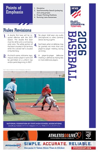 The NFHS is providing FREE Rules Revisions Posters for the new high school baseball season. If you are a coach, administrator, or state association representative, click the link below to download the PDF file.
