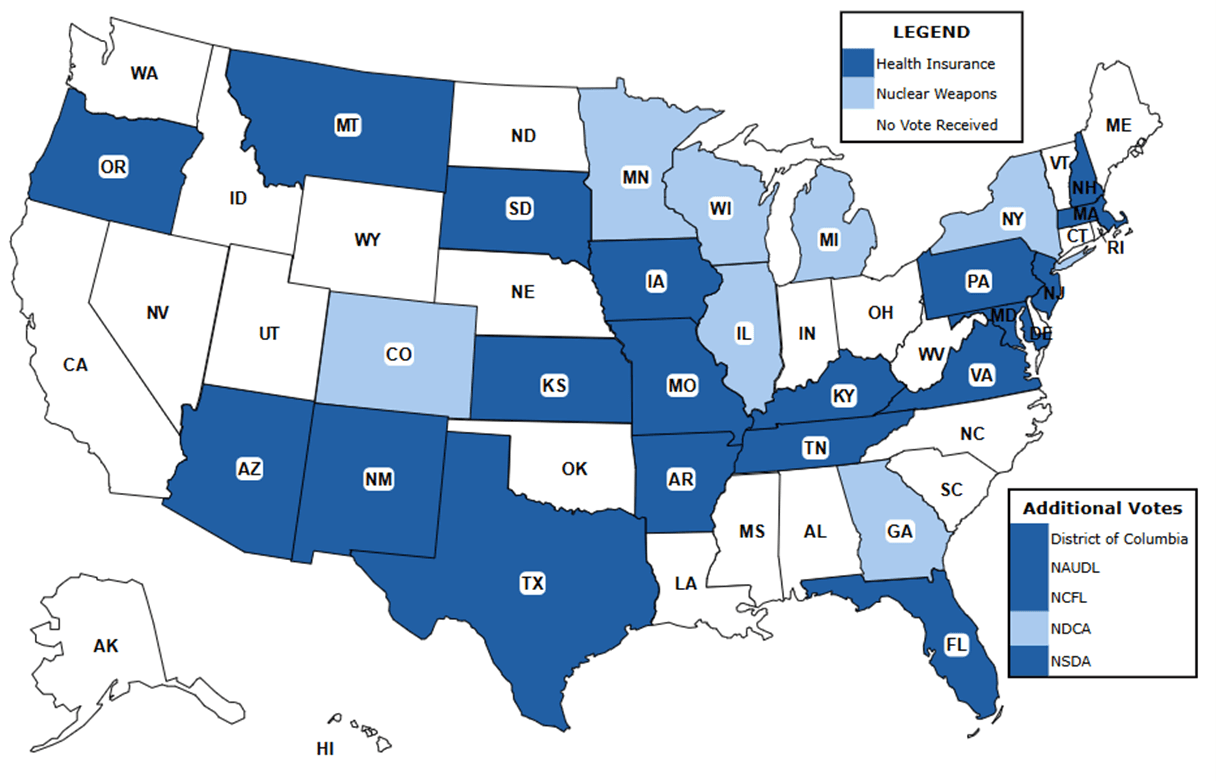 “Health Insurance” was chosen over “Nuclear Weapons” by a 23-8 vote in the final balloting process, which saw participation from 31 state associations, the National Speech and Debate Association, the National Catholic Forensic League, the National Association for Urban Debate Leagues and the National Debate Coaches Association.